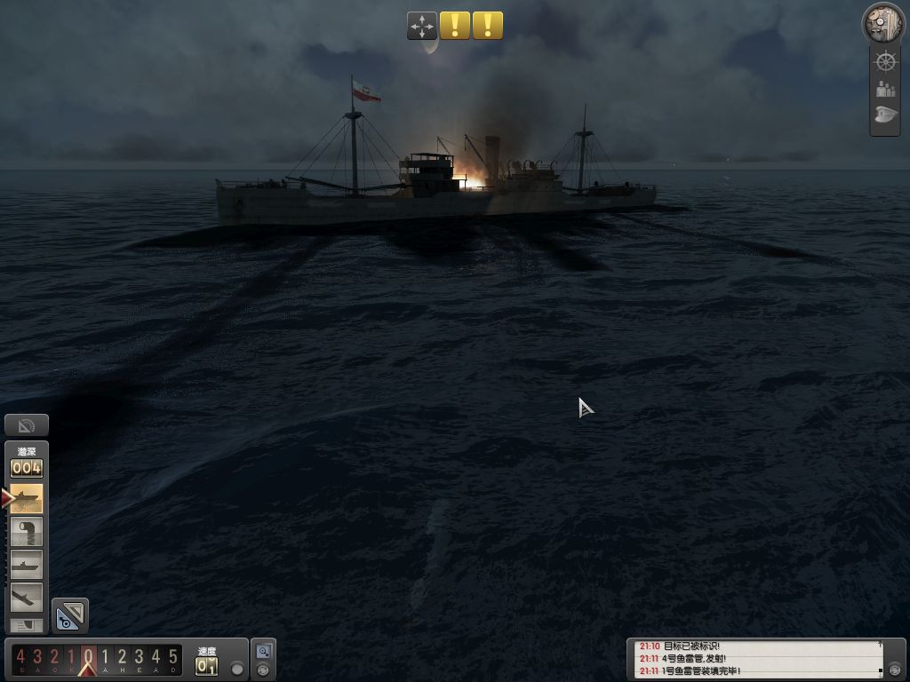 同样击沉他们,也不用下到指挥舱,舰桥上有一个高倍镜X7的。同样可以发射鱼雷.干掉2艘就行,当然,全部不放过也可以