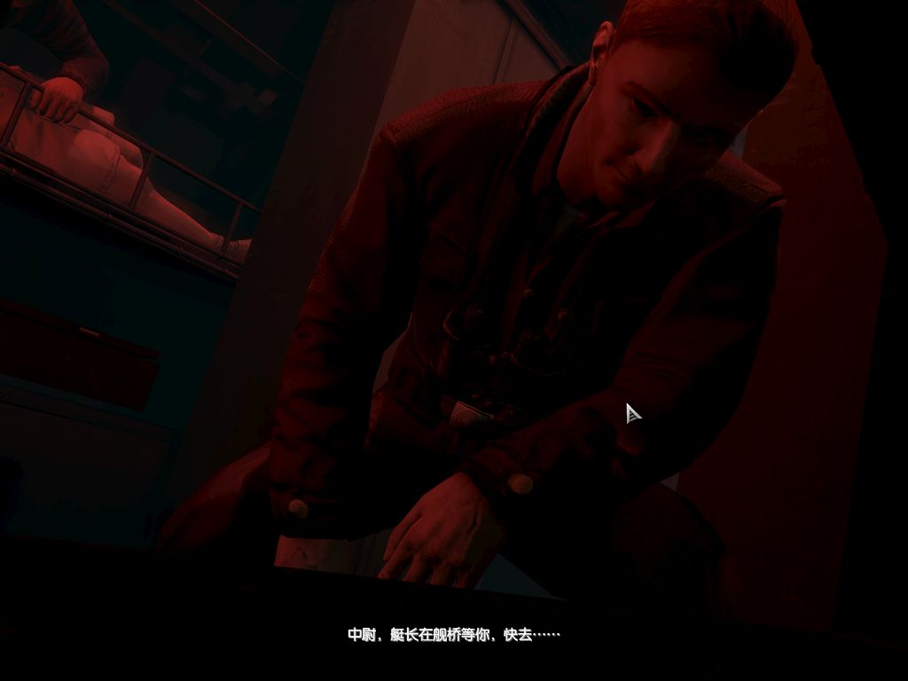 可以移动后,按提示,WASD方向移动,前面至指挥舱,走过后上楼梯到舰桥