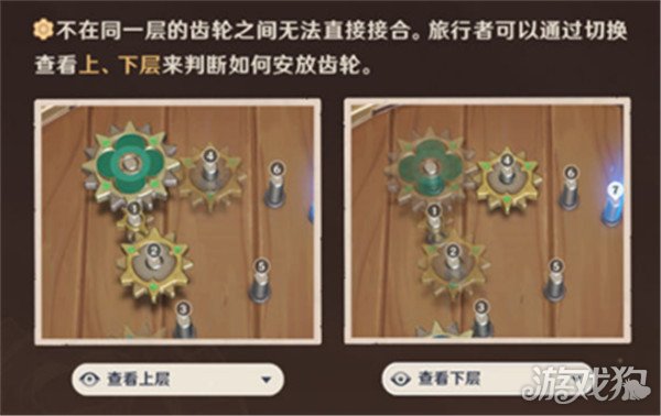 2、不再同一层的齿轮是没有办法接合的,要随时切换上、下层来找到正确合适的位置;