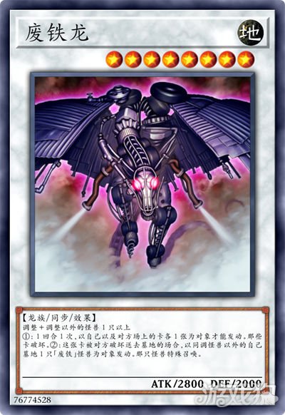 这个卡名的②的效果1回合只能使用1次。①:场上的「废铁」怪兽的攻击力· 守备力上升200。②:场上的表侧表示的「废铁」怪兽被效果破坏送去墓地时才能发动。自己从卡组把1只「废铁」怪兽特殊召唤。