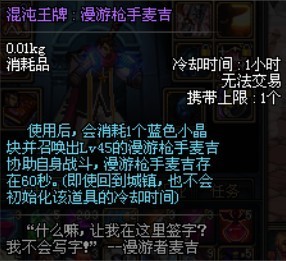 从名字就可以看出,它与魔剑阿波菲斯卡片的效果一直,使用之后是召唤出漫游枪手麦吉攻击敌人。不同的是,麦吉的卡片通过主线任务就可以获得,同样不会被消耗,冷却时间也是1个小时。