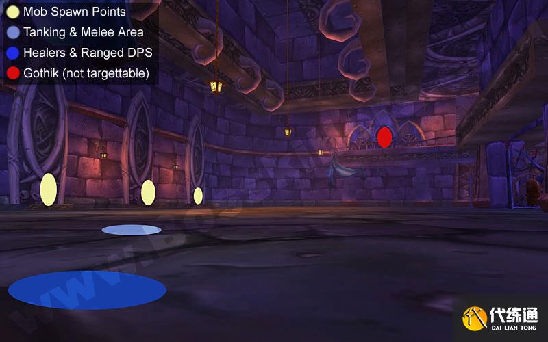 坦克站在中央,以确保最快速度嘲讽戈提克,而输出职业则保证在15秒内尽可能多地输出戈提克。