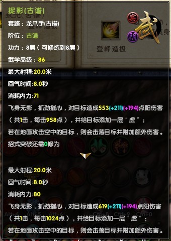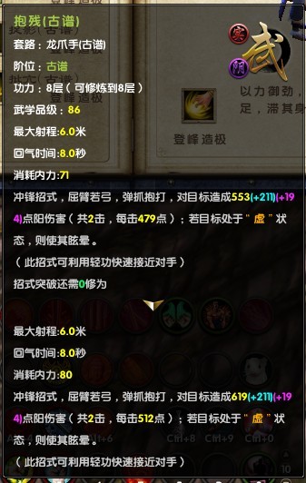 《九阴真经》龙爪手各招式8层属性图解_九阴真经龙爪手古谱