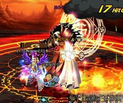 好,玩家们看到阿伽门农周围被红色笼罩的光圈吧? 这个时候必须在红色光环内的魔法阵里面才不会受到伤害,如果出去了