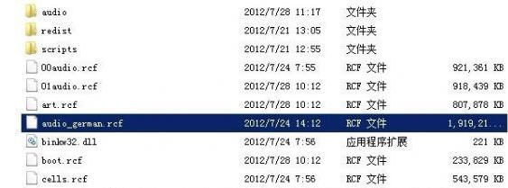 可进行还原英文(看还原后是否恢复了audio_german.rcf文件),然后再进行汉化尝试。汉化后仍然要确保audio_german.rcf不丢失。