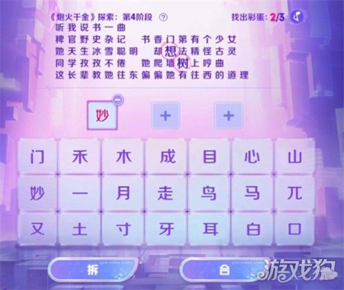 2025-12-16 16:31 来源:西西软件网 作者:思睿王者荣耀炮火千金探索第四阶段答案介绍,《王者荣耀》炮火千金探索是游戏中音你闪耀皮肤上线之后的新活动玩法,玩家在这个活动中需要在歌词中找到相对应的字做出组合,可能有玩家还不清楚第四阶段要怎么过,下面由在下就给大家整理了具体的攻略,一起来看看吧!