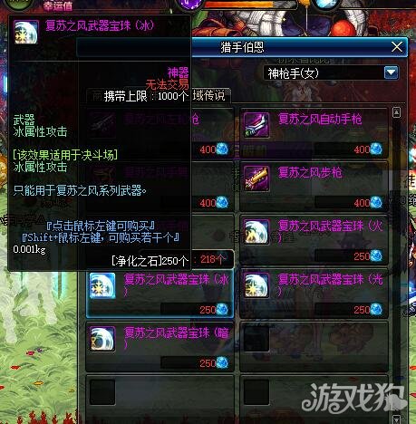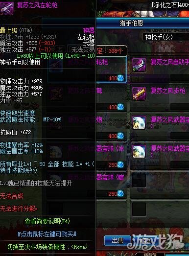 另外玩家可以花费三个精炼时空石购买升级复苏系列武器的图纸,升级材料需要复苏系列武器一把以及800个净化之石,进化之后得到复苏之风系列武器,属于90传说级别,属性是1~85技能+1。玩家还可以花费250个净化之石兑换专门给复苏之风系列武器附加四属性攻击的宝珠。