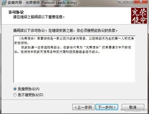 软件安装默认的路径为C:\Program Files\光荣使命(Passion Leads Army),用户可点击浏览更改路径,点击下一步;